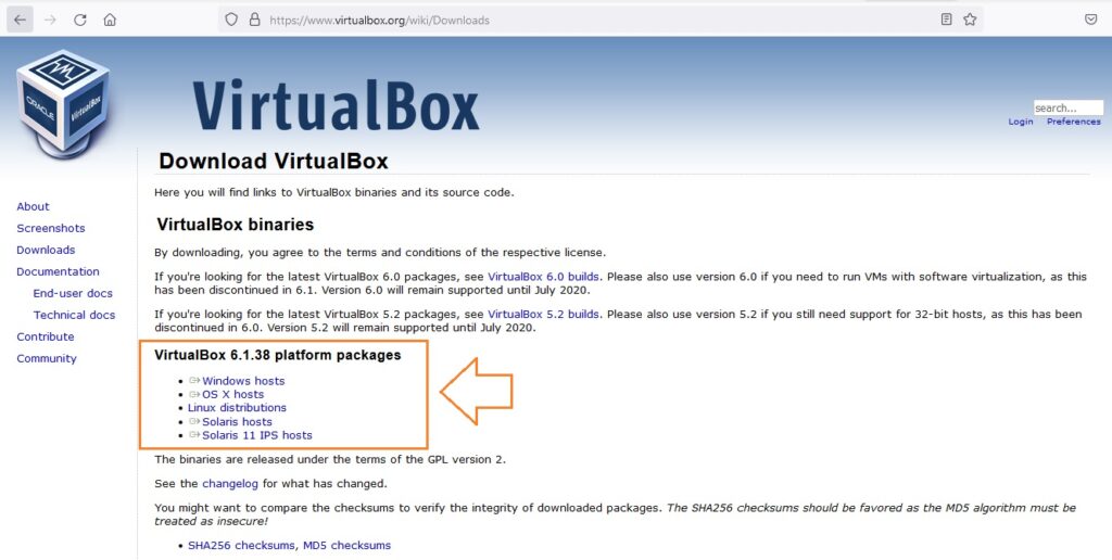 Para descargar el software de VirtualBox dar Clic en el siguiente Link: https://www.virtualbox.org/wiki/Downloads